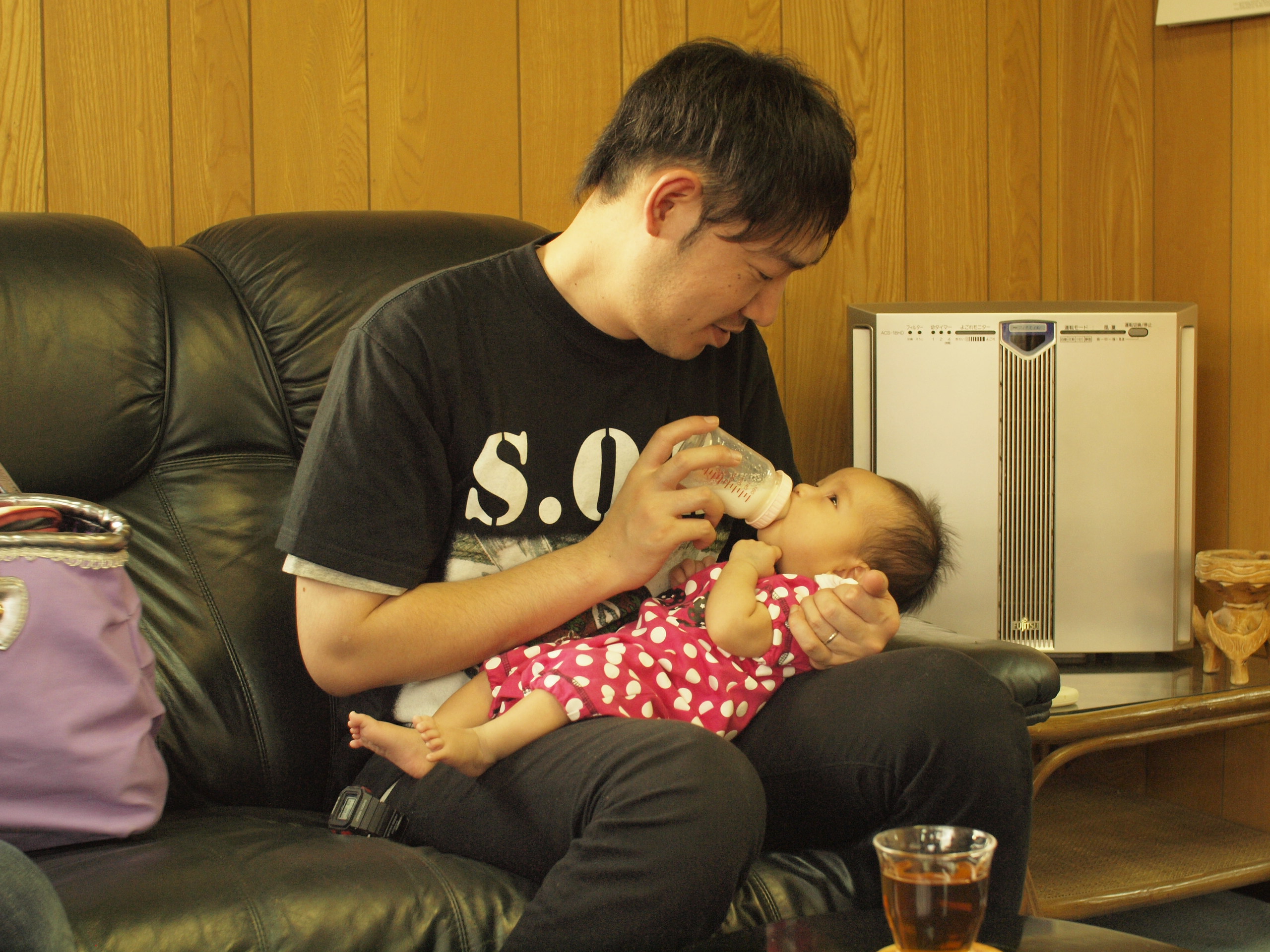 本来の私であれば「男がそんな事をしちゃイカン!」と言うところですが、赤ん坊の可愛さに負けて私が飲ませてあげそうになりました。